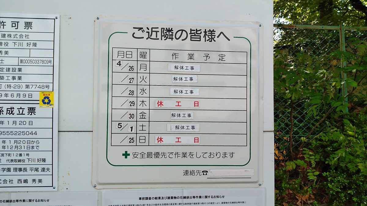 工程表は5月1日まで作業が続くようです。