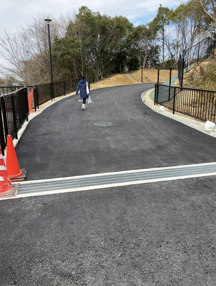 泉ヶ丘公園の整備工事において、南側通路の通行止めが解除されました。
