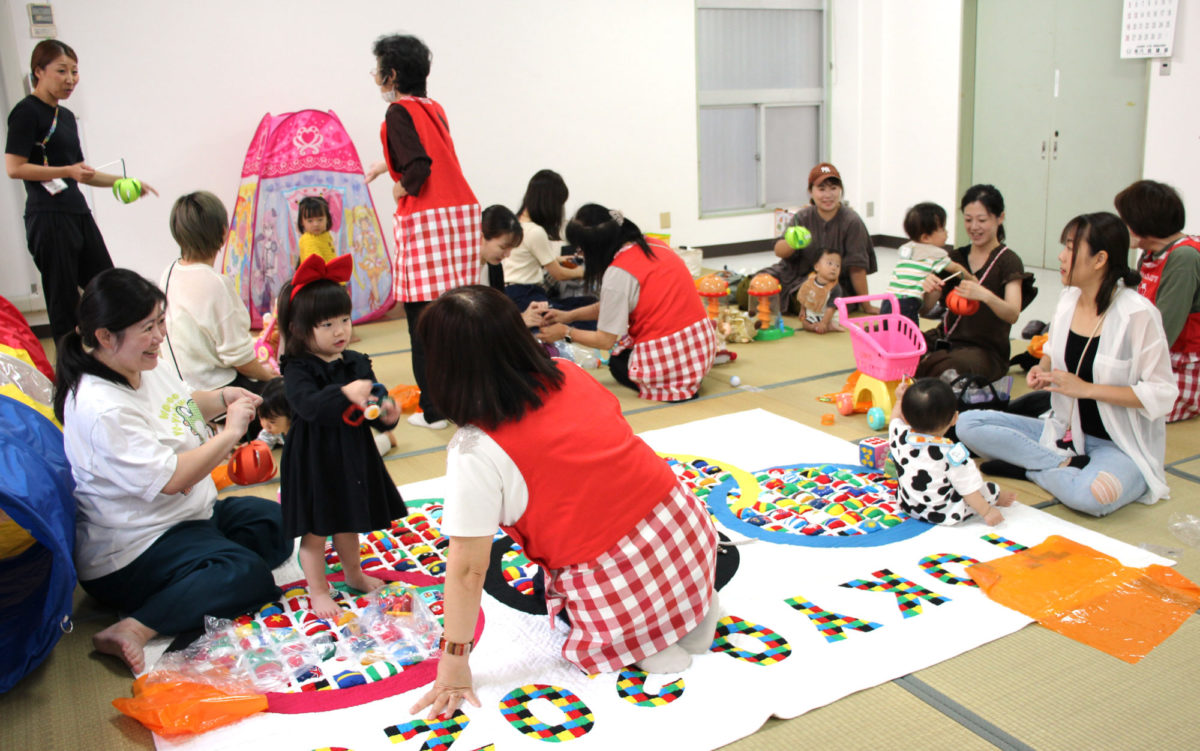 西佳奈さん・紗奈ちゃん(2歳)親子は、近くに同い年の子どもが少ないので、ここでママと子ども共に友達を作ろうと参加していた。同サロン運営委員会委員長の堀川正年さんやスタッフは、参加している親子に絶えず声かけをしていた。
