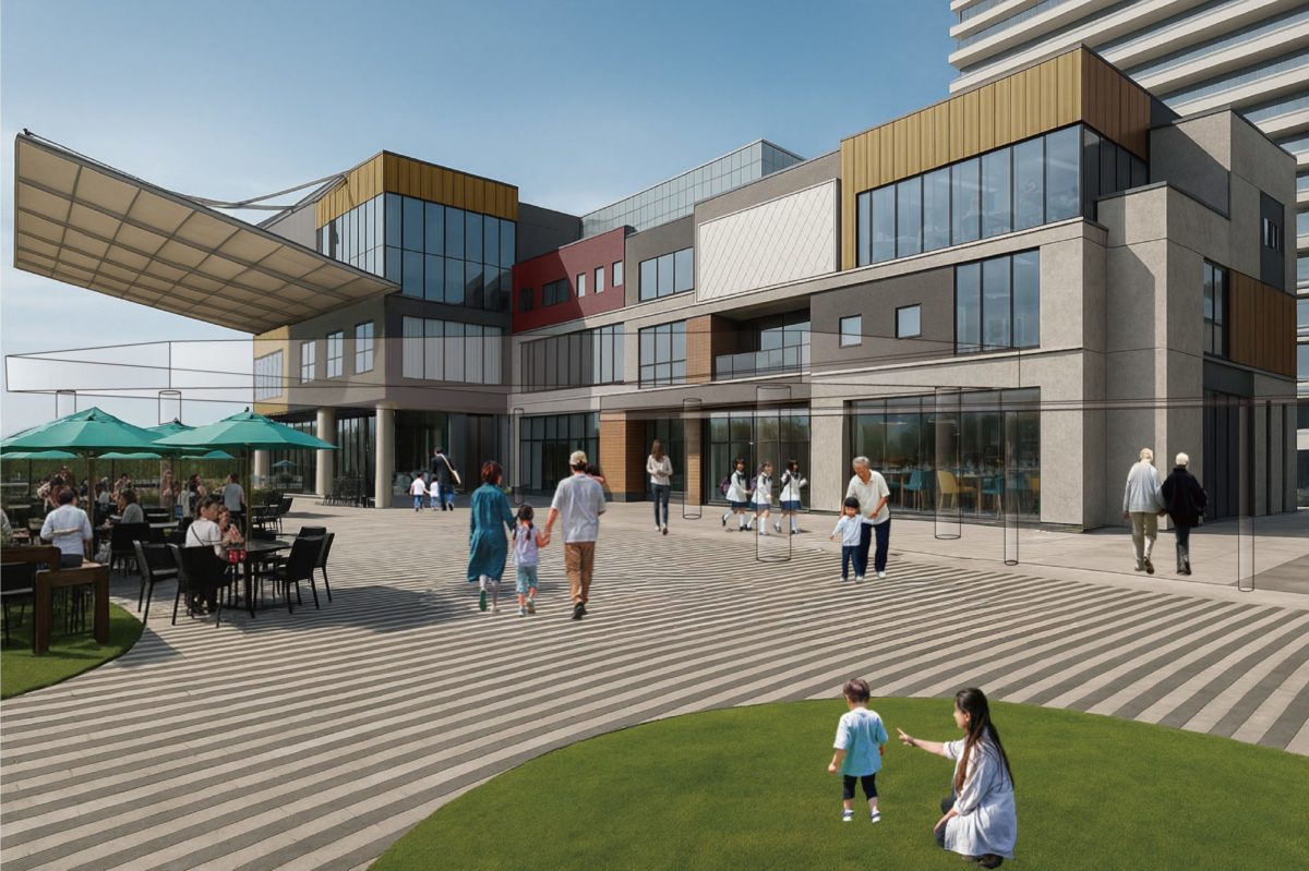 新しい計画によると、現在更地になっている複合ビル建設予定地だった場所に商業施設(地上4階)、及び別棟でタワーマンション(30階建て・370戸)を建設する。