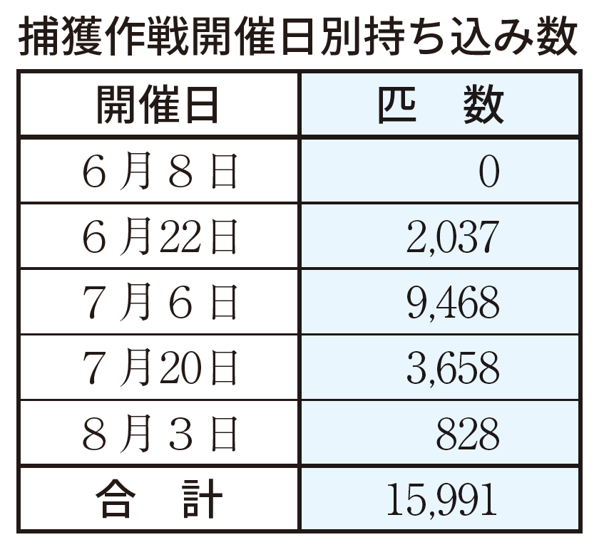 昨年の5倍を超える捕獲数に、同会も驚きを隠せない。当初、5千匹程度の捕獲を予測して、金券交換の資金をクラウドファンディングなどで募っていたが、実際は160万円以上が必要となり、完全に資金がショートする状態となった。