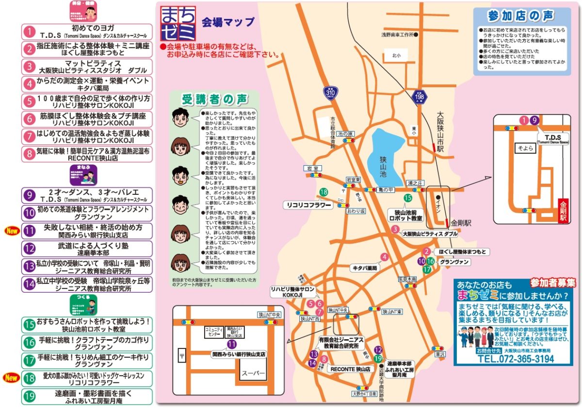 問い合わせは、大阪狭山まちゼミの会事務局072・365・3194