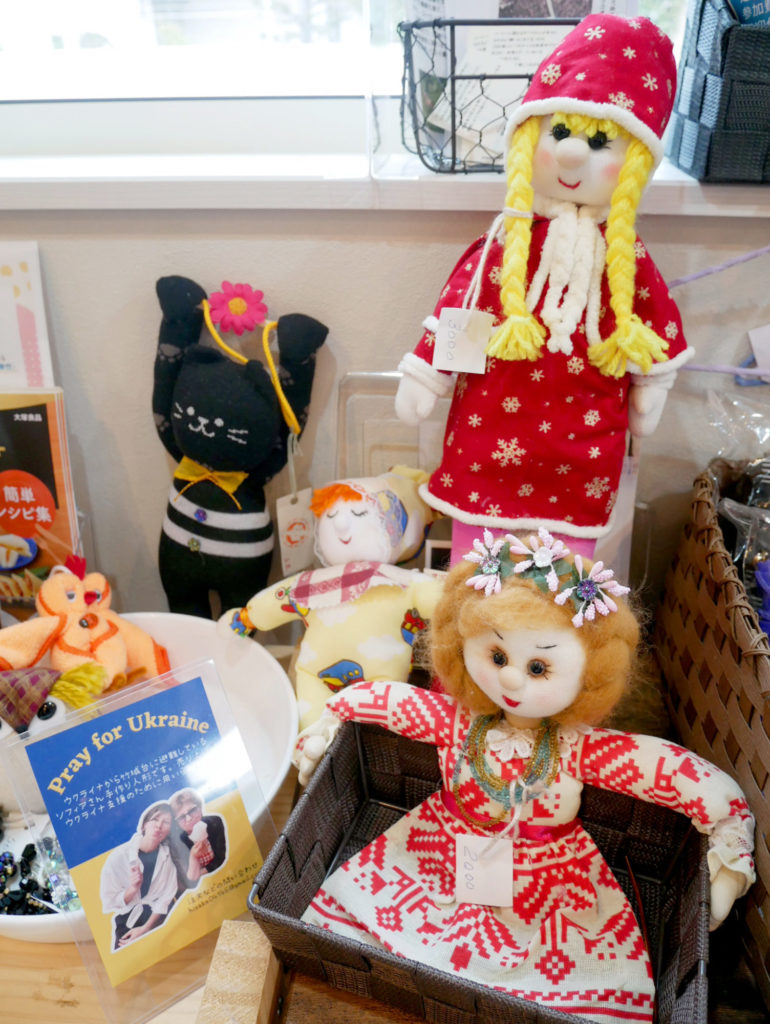 現在は泉ヶ丘ひろばで開かれる「つながるDaysマーケット」や、竹城台のほーぷカフェで販売している。売り上げは、ウクライナで戦争の影響を受け男性が不在の家庭や新生児のいる家庭への支援金として届けている。料理や裁縫を得意とするソフィアさんは、娘フーリアさんが幼い頃に着ていた洋服もすべて手作りしていたそう。