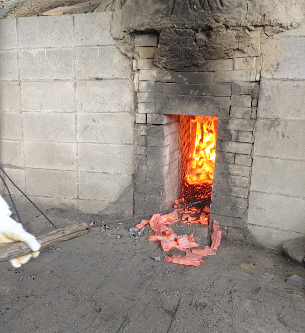 「炭焼き」は12月に原料のウバメガシ、クヌギ、クリの木を伐採し、長さを切りそろえて1か月かけて乾燥。1月29日に炭窯の中に隙間なく木を立てていき火入れを行った。
