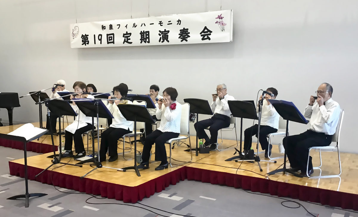 また、「ハーモニカ体験会」を15日1時から和泉シティプラザ2階研修室で開催する。懐かしい童謡など、やさしい曲が中心。参加無料。初心者歓迎。見学可。ハーモニカを持っている人はぜひ持参を。