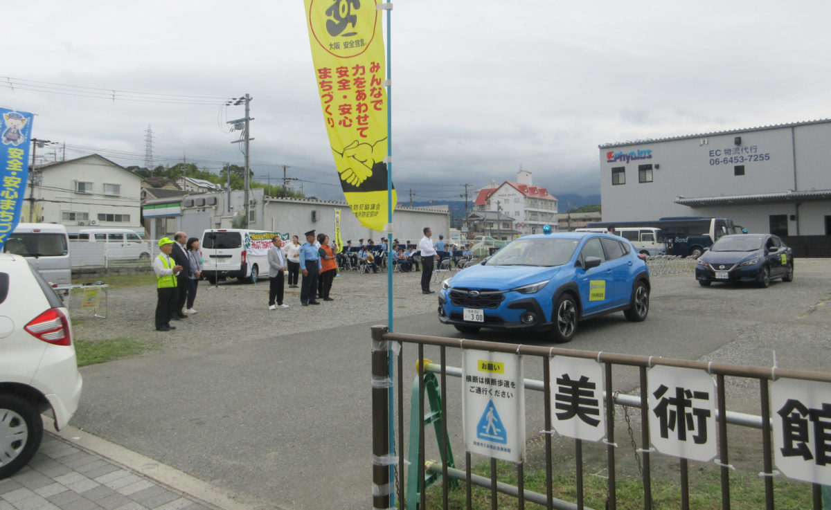 秋の全国地域安全運動に伴い和泉署管内恒例の「和泉市青色防犯パトロール活動合同パトロール出発式」が10月20日、和泉市久保惣記念美術館前駐車場で行われた。
