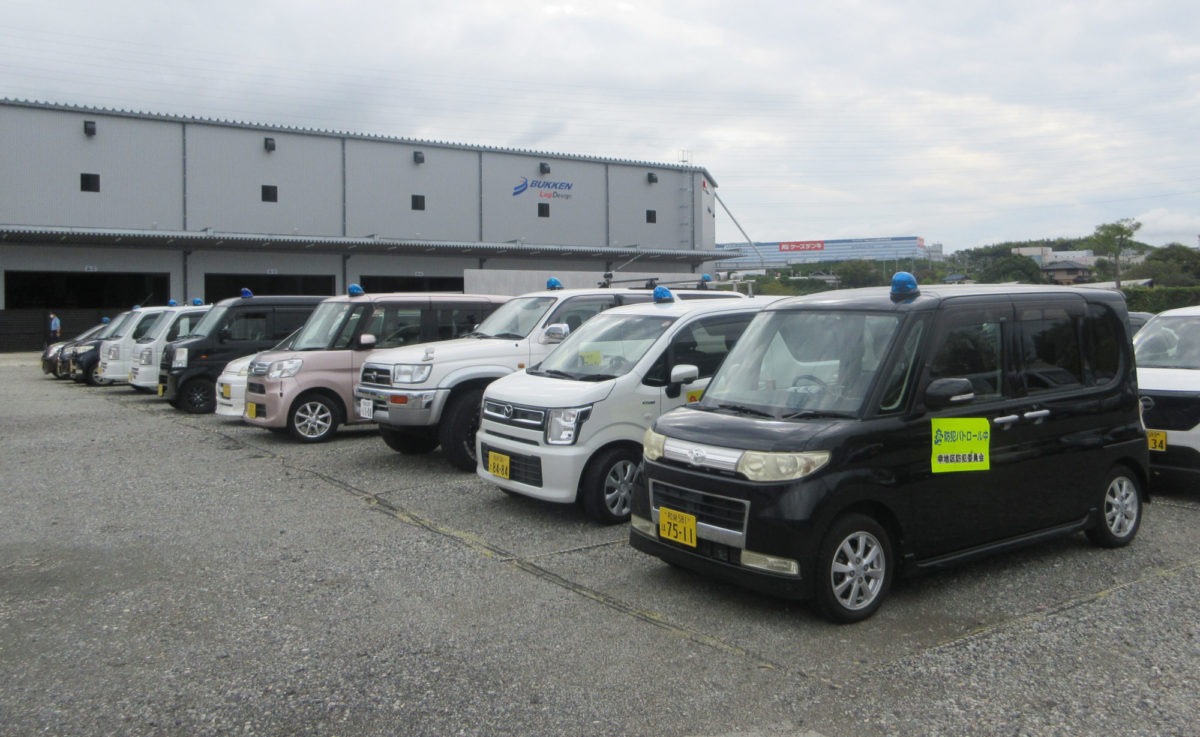 最後に、パトカーを先頭に青パトが一斉に駐車場を出てパトロールに出動した。