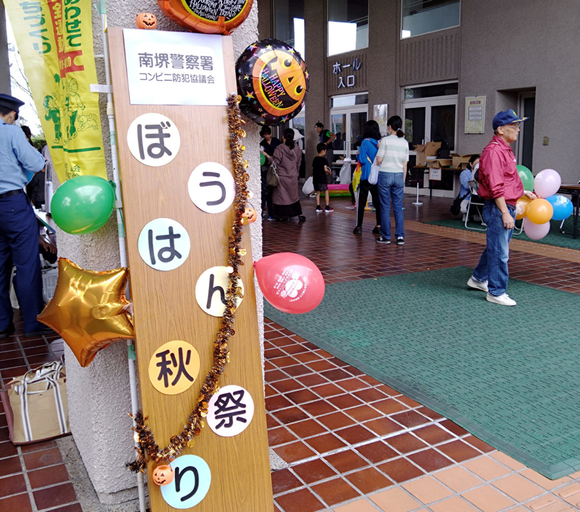 南堺署は10月19日午後、栂文化会館1階ピロティで「ぼうはん秋祭り」を開催し、多くの親子連れでにぎわった。
