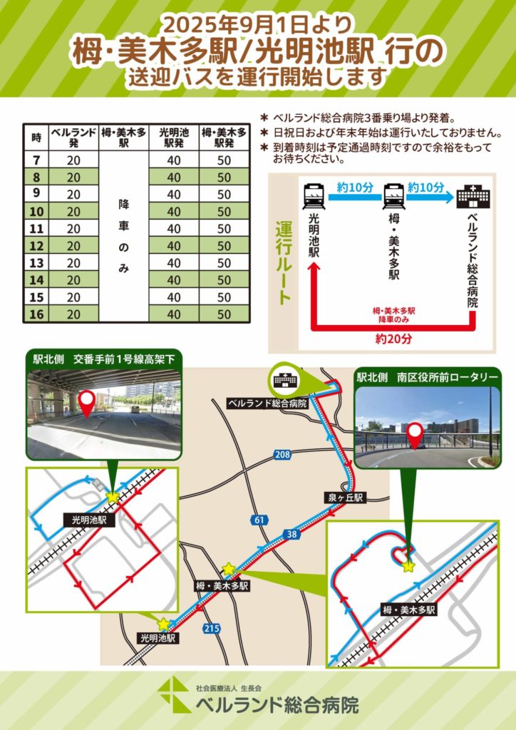 ベルランド総合病院(中区東山)では9月から栂・美木多駅と光明池駅行きの送迎バスの運行を開始している。