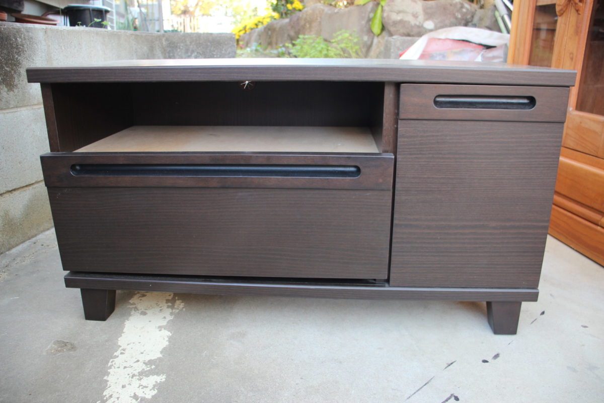 ▷テレビ台(幅83×奥行37×高さ45cm、引き出し1つ、引き戸1つ)を