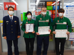 2021.7.30 警察・消防 [金剛]特殊詐欺、未然に防ぐ 初芝の銀行員に黒山署が感謝状 80代女性の不審な動きで 黒山警察署は、7月21日、特殊詐欺の未然防止に貢献した関西みらい銀行初芝支 […] 堺市(南区以外) 特殊詐欺黒山警察署