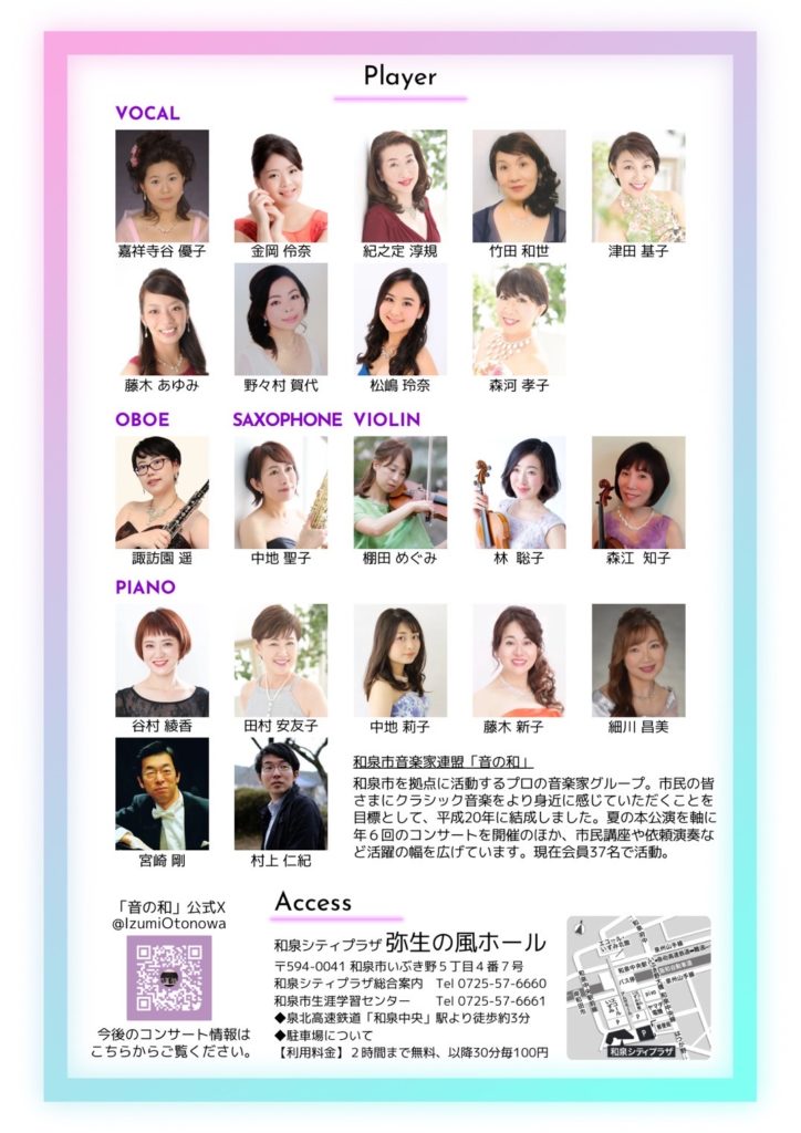 24日2時~、「和泉市音楽家連盟「音の和」17THコンサート奇想天外えっ?あの曲ってクラシックだったの!」が和泉シティプラザ弥生の風ホールで開催される。和泉市を拠点とする音楽家グループの本公演。