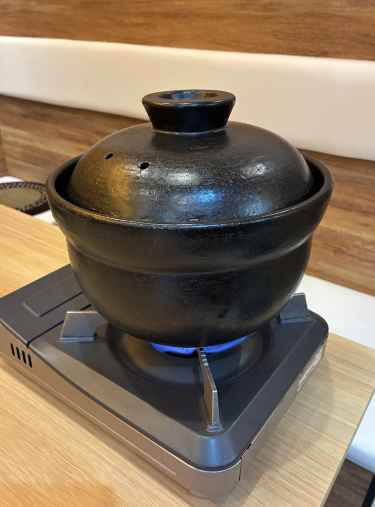 同店ならではのこだわりは各テーブルの卓上コンロで炊き上げる土鍋ご飯。米は魚沼産コシヒカリ。蒸らす時間も含めて待つこと約20分。しっかり粒が立ちふっくらしたご飯は格別のおいしさ。蓋を開けた時の湯気の香りもぜひ味わってもらえたらと。